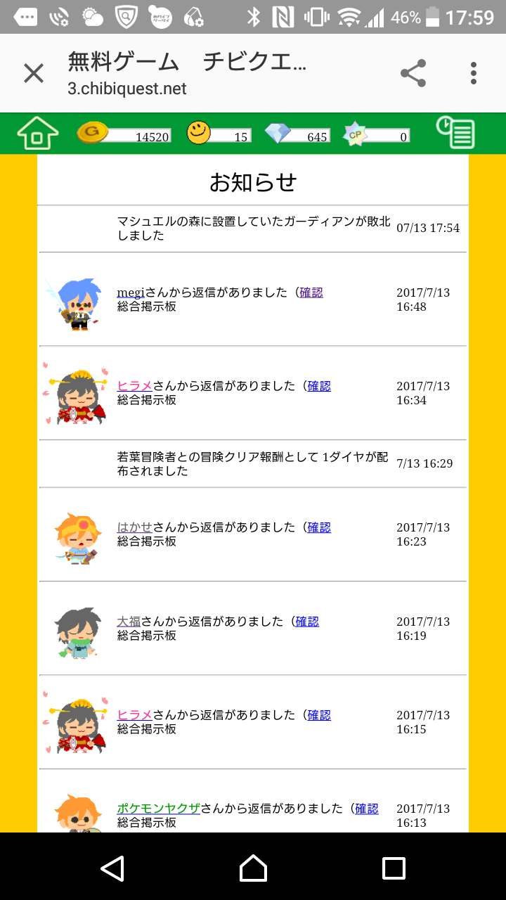 | チビクエスト3 > 掲示板一覧 > 総合掲示板 |