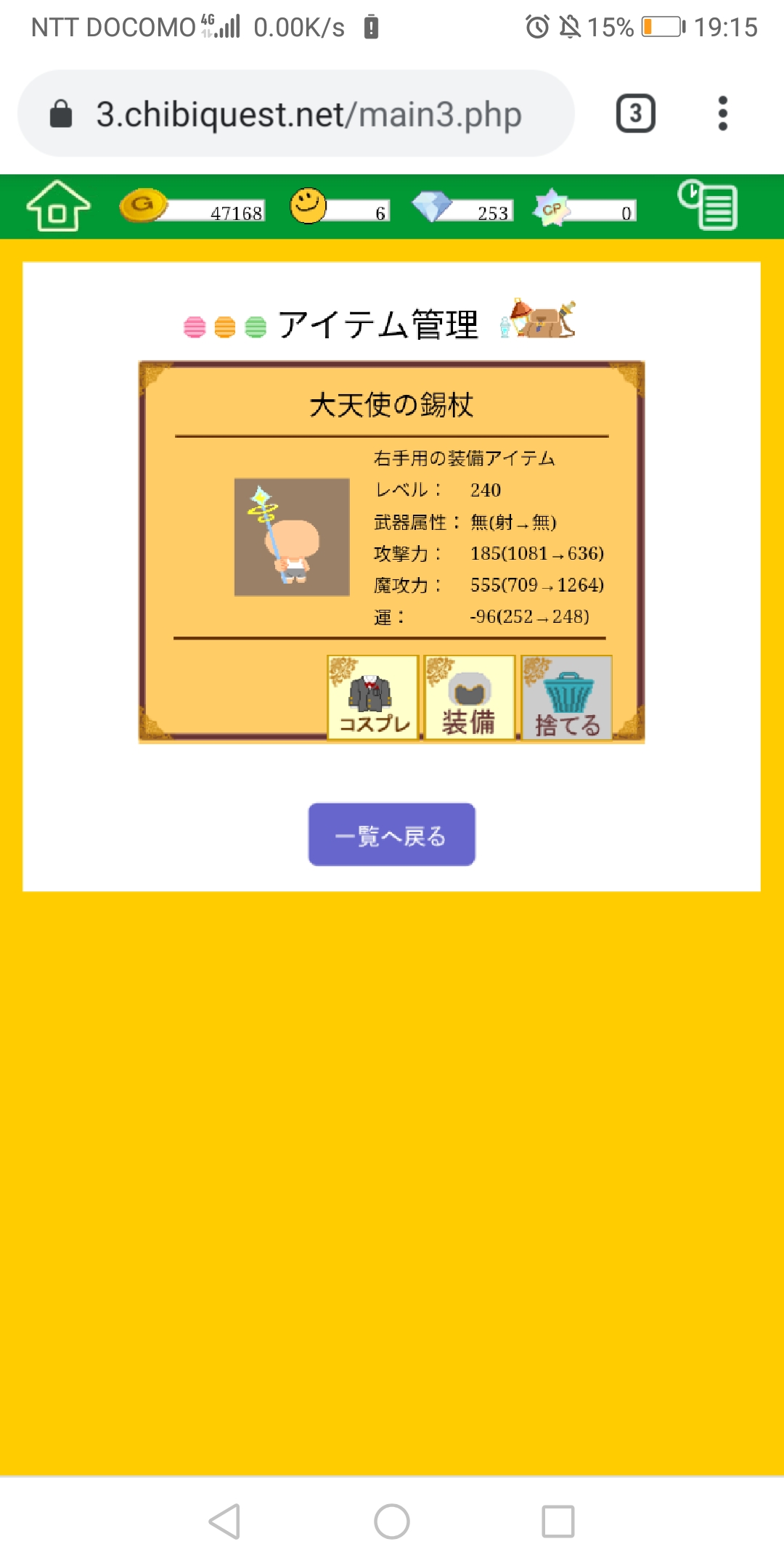 | 出)幻獣深×1 求)300lv+130軽装セット 出)大天使の賜杖 求)ロッ剣+130 [7884] | ||