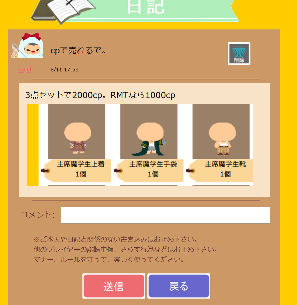 | チビクエスト3 > 掲示板一覧 > 売りたい掲示板 |