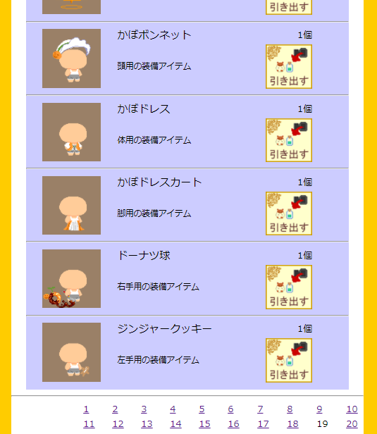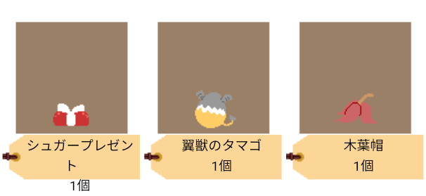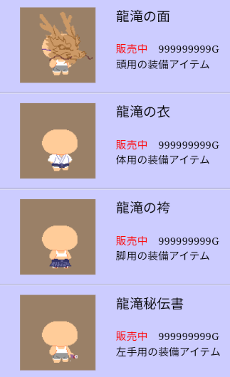 | 画像の装備、アイテムそれぞれ300CPで売ります ※キョンシーは2つで300CP、ススキVは99個で300CPです ![]() [5490] | ||