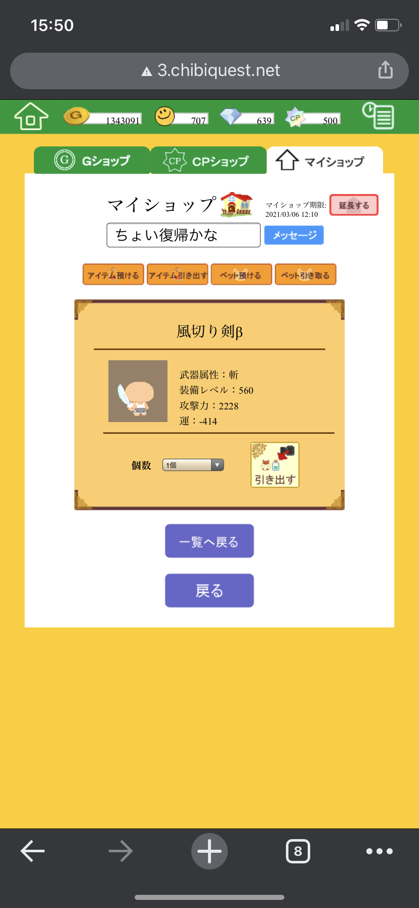 | チビクエスト3 > 掲示板一覧 > 売りたい掲示板 |