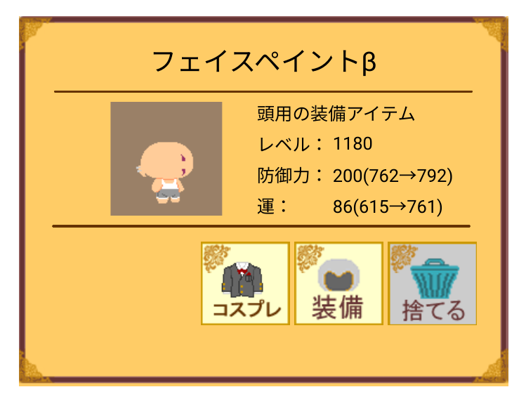 | 出)フェイスペイントβ 求)1500CP これに関しては相場が全くわからないでそ。 ちなみに超ガチャチケから出たものです。 ![]() [9355] | ||