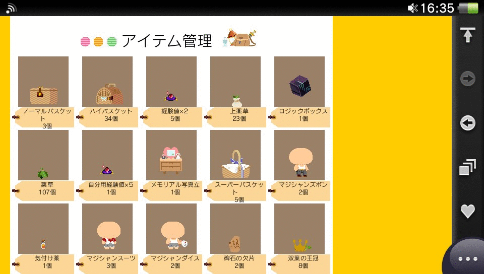 | 射的ラビぐるみ×2 マジシャンスーツ×1 ゆうしゃのかんむり×1 ドールの魔リボン×1 ドールデイルメット×1 ドールの魔杖×1 ドールの魔術書×1 シカナエルの被り×1 欲しいものがあったら声かけてー 早くしないと捨てるけど [7772] | ||
