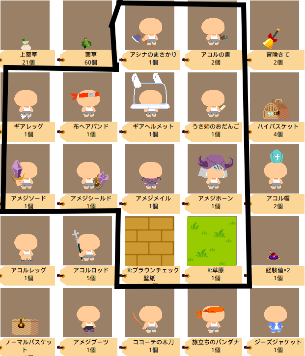 | ・ピンクナイトブラシ ・木の椅子R ・商材のそろばん ・木の葉の剣 二個 ・木の葉の盾 ・レースのバスケット ・闘魂チョップ ・力士マゲ ・ヒーロー仮面 すべて無料で先着順に差し上げます 以下のものは交換となります ・アモルブーツ ・アモルの盾 ・ドールデイルレッグ ・ドールデイルシールド ・ゆうしゃのつるぎ 交渉とさせていただきます。 使い猫系であればすぐに成立しますが、他のものは少し考えさせていただきます。 低浮上なので送るのが遅くなったらすみません。 転売などはご自由にどうぞ。 [1517] | ||
