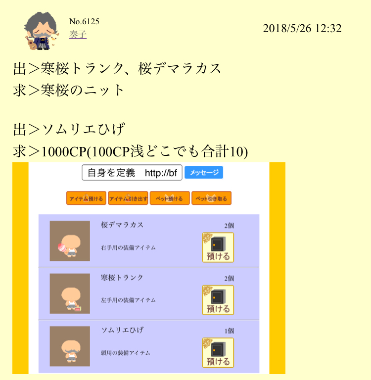| チビクエスト3 > 掲示板一覧 > 売りたい掲示板 |