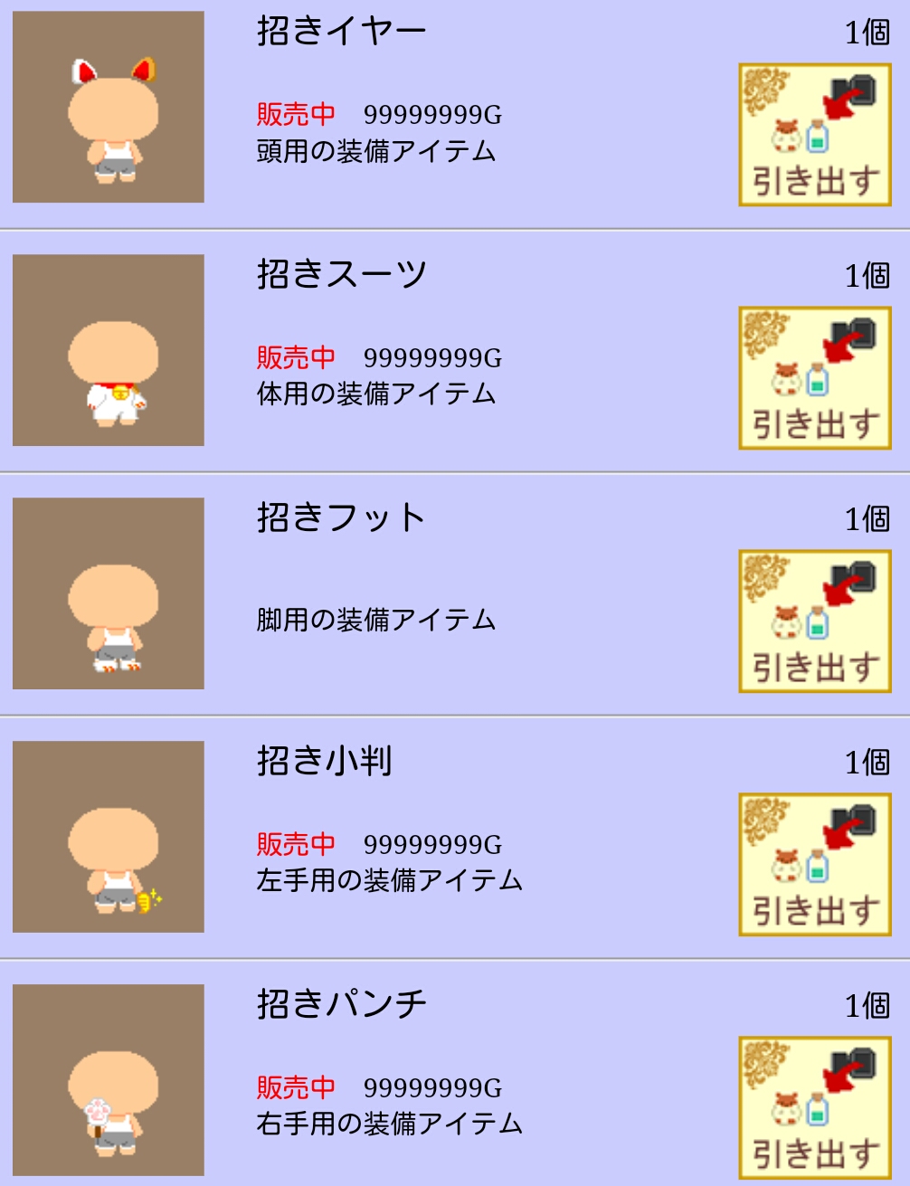 招き一式1500cpくらいで売ります![]() [2414] | ||